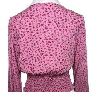 Daisy & Delilah Pink Cropped V Neck Smocked Blouse Size M