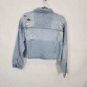 Daisy Distressed Cropped Jean Jacket in Medium Denim Wash - Size Medium