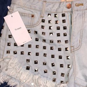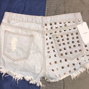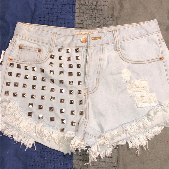 No stretch embellished denim short...I mean daisy dukes! Great quality denim. Tag reads 38 however these were made in China and that equates to a 32. Perfect for your “Hot Girl Summer”
