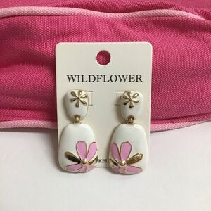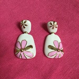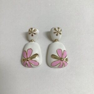 Daisy Enamel Pierced Earrings White Pink Gold Tone Elegant Summer Chic Look NEW
