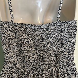 Daisy Floral Print Black and White Cut Out Y2k Mini Dress Smocked Nwt Size S