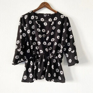 Daisy Floral Wrap Top Front Peplum Drop Sleeve Elastic Waist Nasty Gal US 12