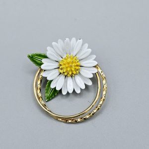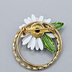 Daisy Flower Brooch Vintage Enamel Double Circle 10k Gold Plated 3D Jewelry