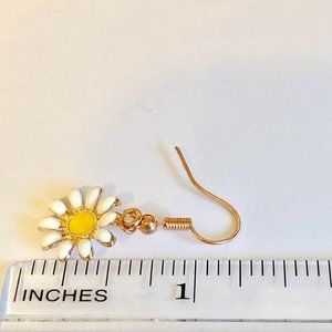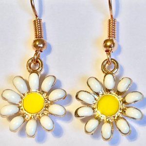Daisy Flower Earrings Rose Gold Plated Enamel White Yellow Dangle Dainty