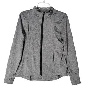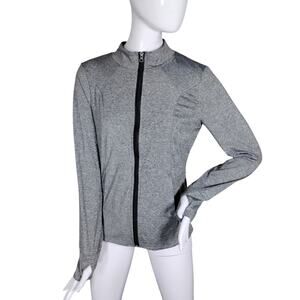 Daisy Fuentes Athletic Sweatshirt Size Medium Marled Gray Thumbholes Full Zipper