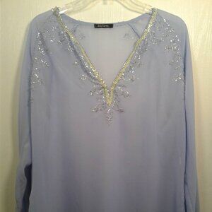 Daisy Fuentes Beaded Longsleeve Light Blue Top XL-XXL