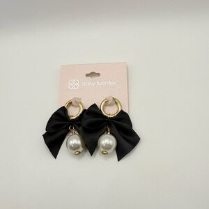 Daisy Fuentes Black Bow Pearl Gold Earrings statement fashion design gift