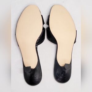 Stylish black Daisy Fuentes sandals with a croc-embossed design. Perfect for any occasion.