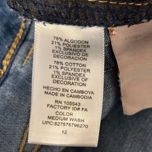 These Daisy Fuentes jeans feature a classic blue hue and a stylish ankle-cropped design, perfect for a casual yet chic look. The soft denim fabric offers a comfortable fit, making them ideal for everyday wear.