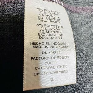 Chic charcoal wide band leggings by Daisy Fuentes. Perfect for working out or a quick trip to the grocery store. Made of polyester rayon and spandex. 28 inch inseam. 38 inch waist measurement. Measurements are approximate.