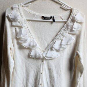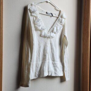 Daisy Fuentes Cream Ruffled Button Down Cardigan Size Small. Delicate and elegant. Wear all year round. Excellent condition.
