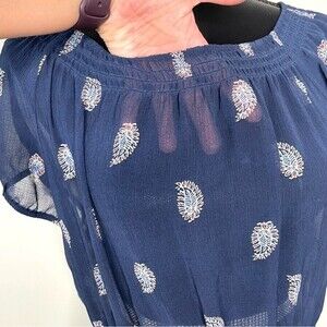 Daisy Fuentes Dress Gaya Evening Blue Sheer White Feather Pattern Print Paisley