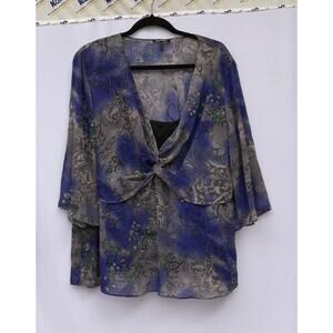 Daisy Fuentes Fairy Boho Flare Sleeve Blouse Size 2X Sheer with Built in tank