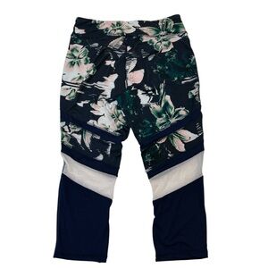 Daisy Fuentes Floral Capri Workout Leggings Floral Print, Navy Blue, Size Large