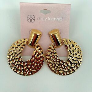 Bold gold earrings with a textured design. Perfect for any occasion.