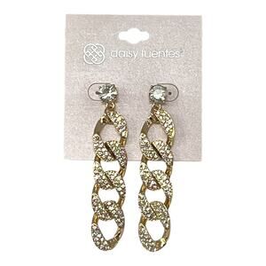 Daisy Fuentes Gold Tone Hoop and Crystal Chain Link Earrings Set (2 Pairs NWT)