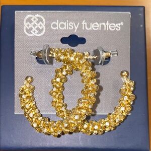 These stunning earrings by Daisy Fuentes feature a luxurious gold beaded design and are perfect for making a statement. The intricate beadwork adds a textured, three-dimensional look that beautifully catches the light. Ideal for adding a touch of elegance to any ensemble.