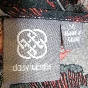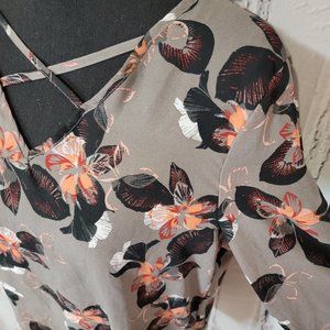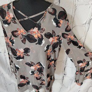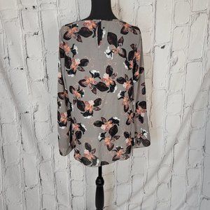 Daisy Fuentes Gray Floral Long Bell Sleeve Chiffon Top Back Button Closure M