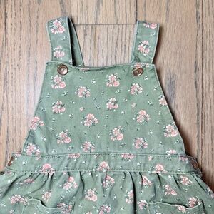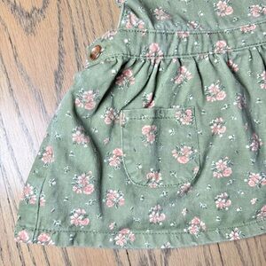 Daisy Fuentes Little Girls Dungaree Khaki Green & Pink Floral Overall Dress 24M