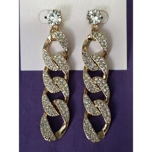 Daisy Fuentes Long Dangle Statement Earrings Gold Tone Clear Rhinestones New