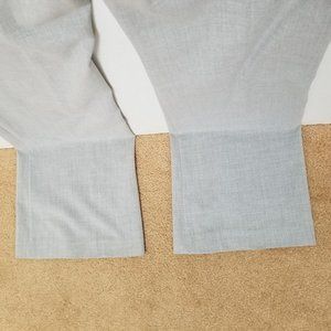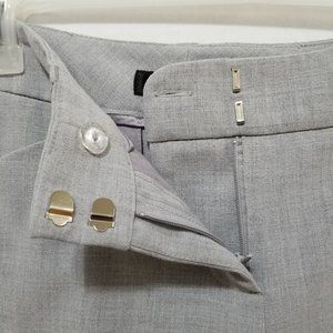 Wide leg boot cut flare trousers/slacks/dress pants. 4 pockets -- back pockets are still stitched shut. Zip fly with double hook-and-bar closure with interior button closure. Stretch. Career, work, office, business casual.