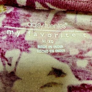Elevate your wardrobe with this stunning long-sleeve top by Daisy Fuentes! Featuring a beautiful floral design in shades of purple, cream, and gold, this piece is perfect for any season.
