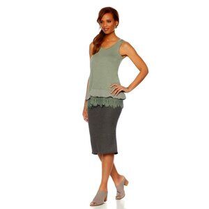 Daisy Fuentes SAGE Jersey Knit w/Chiffon Crochet & Eyelash Trim Tank Top XS NWT