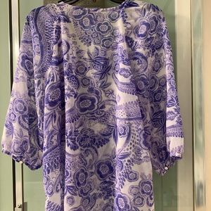 Daisy Fuentes Semi-sheer Violet Floral Peasant Top Blouse Polyester Chiffon Size Large EUC