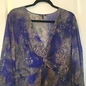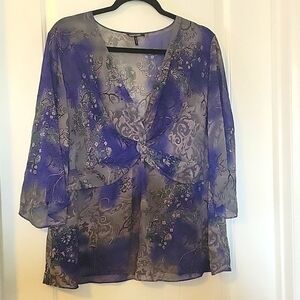 Daisy Fuentes Sheer Floral Blue & Gray Blouse 2x