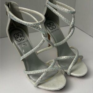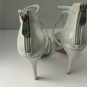 Daisy Fuentes Silver Rhinestone Strappy High Heels Women's Shoes Size 7M