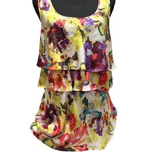 Daisy Fuentes Sleeveless Layered Floral Blouse Soft Vibrant No Sheer Large