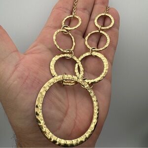 Daisy Fuentes Statement Necklace • Gold Hammered Open Circles • 17–20”