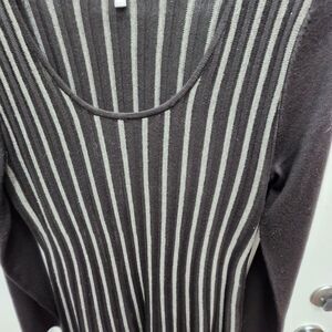 Daisy Fuentes Sweater Dress Tunic Womens Large Black Gray Striped Scoop Neck
