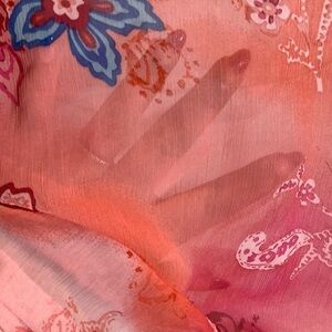 Daisy Fuentes - Sz XL - boho cover up shirt wide sleeves floral transparent