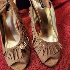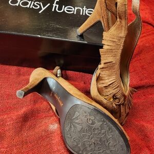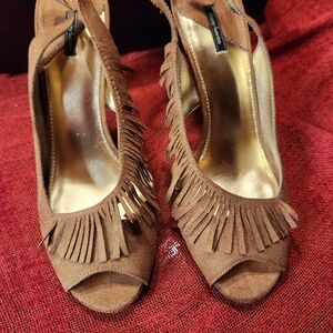 Daisy Fuentes Tan Fringe Peep Toe Heels