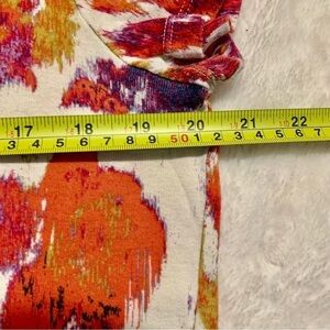 Daisy Fuentes Top Large Cream Orange Purple Gold Abstract Floral Cotton