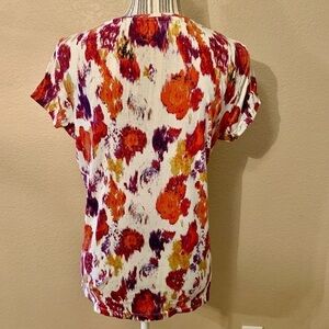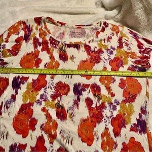 Daisy Fuentes Top Large Cream Orange Purple Gold Abstract Floral Cotton