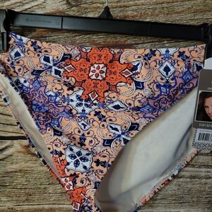 "Daisy Fuentes " Woman's bikini Bottoms Size: 16 peach/blue/white NWT