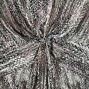 The Daisy Fuentes Women's 3X Pink Black Twist Front V-Neck Top Blouse is a stylish and versatile piece perfect for a career or work environment. This blouse features a geometric pattern in a tapenade combo of pink, black, white, and gray. With a V-neckline and short sleeves, it offers a flattering empire silhouette with a fitted bodice ending just below the bust. Made from a comfortable 95% polyester and 5% spandex blend, this blouse is easy to care for with machine washable fabric. Perfect for casual, workwear, or business occasions, this blouse is a great addition to any wardrobe for all seasons.
