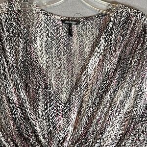 Daisy Fuentes Women's 3X Pink Black Twist Front V-Neck Top Blouse Career Work