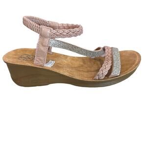 Daisy Fuentes Women's Pink Wedge Sandals Slingback Embellished Casual
