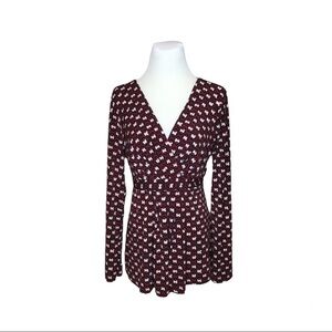 Daisy Fuentes Womens Size L V Neck Crossover Wrap Blouse Wine White Gray Knit