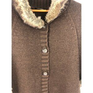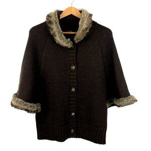 Daisy Fuentes Women's Size Medium Brown Poncho/Cape Cardigan Faux Fur Trim