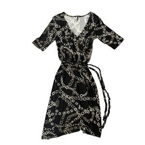 Daisy Fuentes Womens Small Chain DRESS Black Taupe White Belt V Neck Mob Wife