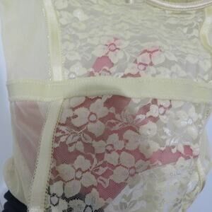 Daisy Fuentes Womens Sz M Light Yellow Sheer Lace Bodysuit Floral Lace