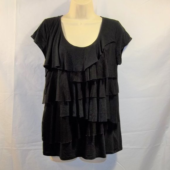 Daisy Fuentes Womens Top Blouse Size Medium Scoop Neckline Ruffles Casual Black