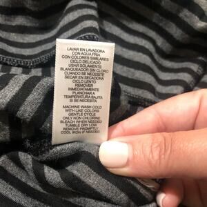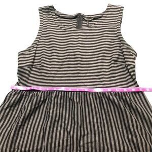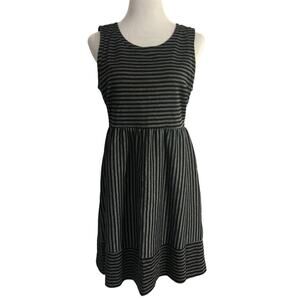 Daisy Fuentes gray and black stripe dress. Knee to mid calf length.