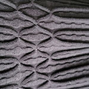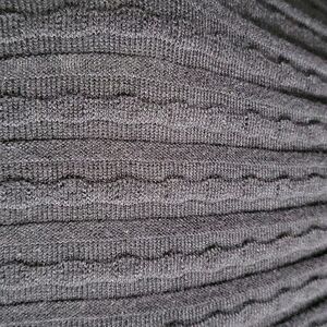 The top and bottom of this sweater have a straight texture and wave texture knit that meets in an oval pattern at the waist.