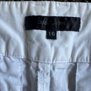 Daisy Fuentes capri pants, size 16. White color with two pockets in the front and back. In good used condition, no rips tears or stains. 97% cotton, 3% spandex.