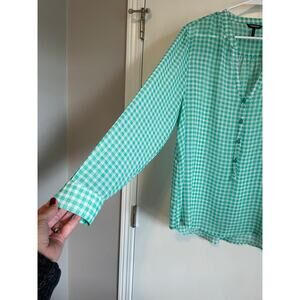 Daisy Fuentes green gingham sheer blouse buttons long sleeve lightweight top XL